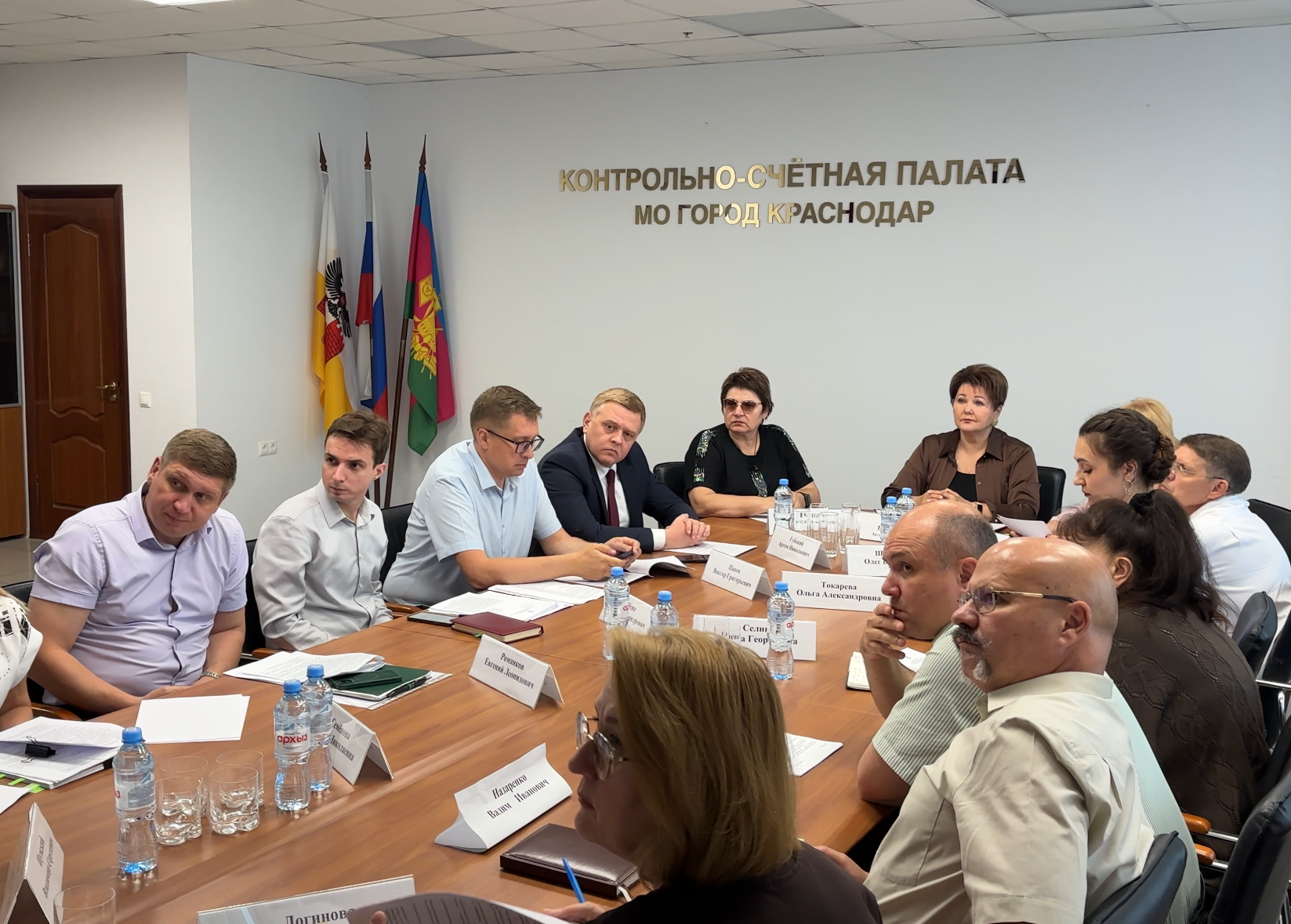 На расширенном заседании Коллегии Контрольно-счетной палаты города Краснодара обсудили результаты проверки работы МУП ВКХ "Водоканал" за 2023 год и первое полугодие 2024 года. Заседание проведено с участием руководства предприятия и представителей администрации города: директора МУП ВКХ "Водоканал" Валерия Дробота, директора департамента городского хозяйства и топливно-энергетического комплекса администрации МО город Краснодар Олега Шишковского, директора департамента муниципальной собственности и городских земель администрации МО город Краснодар Артема Губского и начальника управления цен и тарифов администрации МО город Краснодар Евгения Романкова.